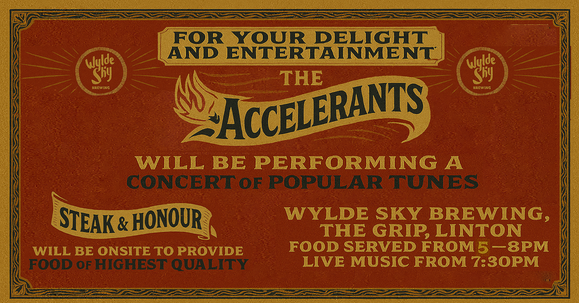 TAPROOM OPEN | LIVE MUSIC THE ACCELERANTS | FOOD TRUCK Steak & Honour